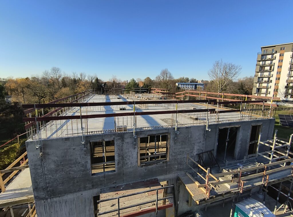 W połowie listopada zakończyliśmy III etap budowy: konstrukcję pierwszego piętra w budynkach A i B.